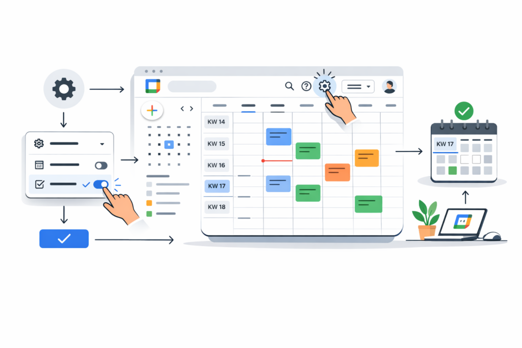 Google Kalender ist ein unverzichtbares Werkzeug für die Organisation und Planung von Terminen und Ereignissen. Eine der nützlichsten Funktionen, die oft übersehen wird, ist die Anzeige von Kalenderwochen. In diesem Leitfaden erfahren Sie, wie Sie die Kalenderwochen in Google Kalender aktivieren und nutzen können, um Ihre Planung effizienter zu gestalten.